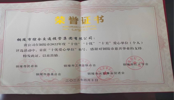 近日,2022年度市“十佳”“十優(yōu)”“十美”愛心單位評(píng)選出爐,集團(tuán)公司被授予“十優(yōu)愛心單位”榮譽(yù)稱號(hào)。