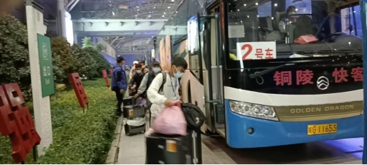 11月16日21時(shí)15分,銅陵交投汽運(yùn)有限公司四輛大巴車提前兩小時(shí)趕到合肥,整齊停靠在高鐵站外,在站內(nèi)工作人員引導(dǎo)下,安全有序從高鐵專列上接駁轉(zhuǎn)運(yùn)165名藏族學(xué)生踏上了來銅歸學(xué)之途,并于次日凌晨3點(diǎn)平安送抵銅陵市石山村隔離點(diǎn)。