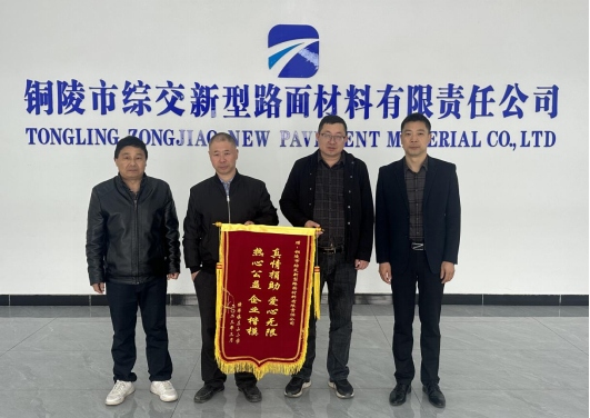 3月16日上午,收到愛心捐款的橫埠鎮(zhèn)左山小學(xué)校長(zhǎng)在橫埠園區(qū)管委會(huì)負(fù)責(zé)人的陪同下,將一面寫著“真情捐助 愛心無限 熱心公益 企業(yè)楷模 ”的錦旗送到綜交新型路面材料公司,對(duì)我公司的愛心公益事業(yè)行為表示衷心感謝。