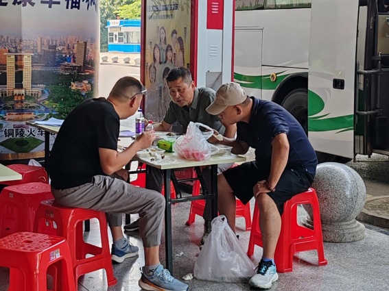 “做好熱情周到服務(wù),不僅能夠給來銅新生留下第一美好印象,讓新生愛上銅陵,更是我們客運公司不斷自我優(yōu)化、提升服務(wù)品質(zhì)的追求?!痹摴矩?fù)責(zé)人說。9月10日,周日抵銅新生格外多些,該公司駐守站點志愿人員臨近中午只能就地盒飯解決,忙里偷閑還不忘交流完善工作細(xì)節(jié)。