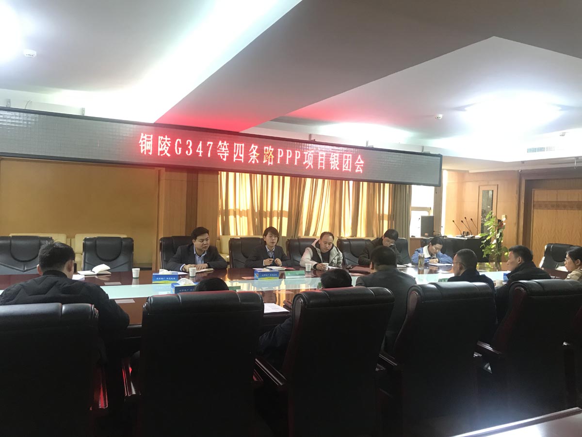 12月4日上午,G347ppp項目公司召開G347等四條路PPP項目銀團會。中國農(nóng)業(yè)銀行銅陵分行、中國建設銀行銅陵分行、中國銀行銅陵分行、中國工商銀行銅陵分行及交通銀行銅陵分行等6家銀行參加對接會。