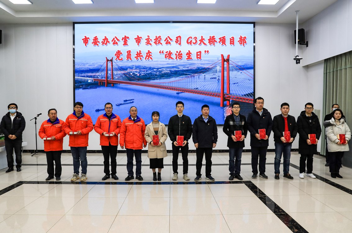 12月24日上午,集團(tuán)公司聯(lián)合市委辦、G3橋項目部舉辦共慶黨員“政治生日”活動。市委常委、秘書長胡啟書,中鐵大橋局副總經(jīng)理季躍華,集團(tuán)公司黨委副書記方勁松、黨委委員、紀(jì)委書記章新華、黨委委員、副總經(jīng)理范美霞以普通黨員身份參加。
