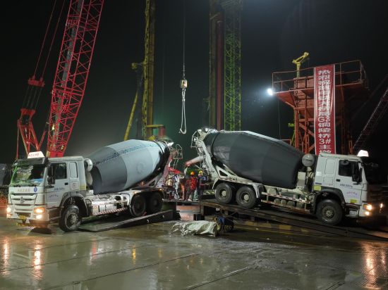 “此次灌注的是3號主墩19號樁。3號主墩共有68根鉆孔樁,每根樁直徑3.0米,樁長95米,成孔深度達122.5米,入巖深度約71.4米,鉆進施工采用徐工XR580HD、XR600E和XR700型旋挖鉆機逐級擴孔鉆進成孔?!敝需F大橋局G3銅陵長江公鐵大橋項目一分部總工程師宋海濤介紹,G3銅陵長江公鐵大橋是世界首座雙層斜拉-懸索協(xié)作體系大橋,3號墩和4號墩是大橋的兩個主墩,承載988米的主跨一跨過江。