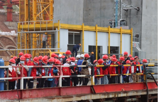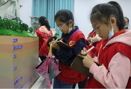 上午9時(shí)許,一輛承載著小記者們歡聲笑語(yǔ)的大巴車緩緩駛?cè)隚3銅陵長(zhǎng)江公鐵大橋建設(shè)基地,小記者們有序下車后,按照規(guī)范佩戴好安全帽,便在工作人員的帶領(lǐng)下參觀G3公鐵橋南岸建設(shè)現(xiàn)場(chǎng),面對(duì)著聳立江面的G3銅陵長(zhǎng)江公鐵大橋4號(hào)墩,小記者們驚嘆于現(xiàn)代科技的鬼斧神工,并化作自己的語(yǔ)言記錄在筆記本上。