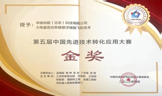 2023年4月6日,我司銅交投海貝科創(chuàng)股權(quán)基金所投華馳動(dòng)能項(xiàng)目,在河北省保定市舉辦的第五屆中國(guó)先進(jìn)技術(shù)轉(zhuǎn)化應(yīng)用大賽(以下簡(jiǎn)稱本屆大賽)中,以“大電量高功率磁懸浮儲(chǔ)能飛輪技術(shù)”,成功斬獲新能源與節(jié)能降碳技術(shù)產(chǎn)業(yè)化類金獎(jiǎng)。該項(xiàng)目經(jīng)歷三個(gè)月激烈角逐,從 1100個(gè)參賽項(xiàng)目中脫穎而出,最終在本屆大賽十五個(gè)金獎(jiǎng)中斬獲一金。
