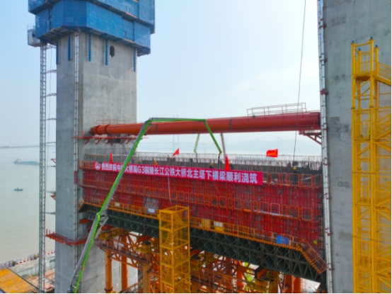 4月6日晚,由中鐵大橋局承建的世界首座鋼桁梁斜拉—懸索協(xié)作體系橋——G3銅陵長江公鐵大橋北主塔下橫梁開始澆筑混凝土。大橋主塔施工迎來關(guān)鍵節(jié)點,為下一步上塔柱施工打下堅實基礎(chǔ)。