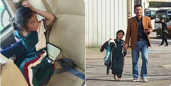 圖為客運公司負責人親自送“掉隊”的小朋友回到父母身邊