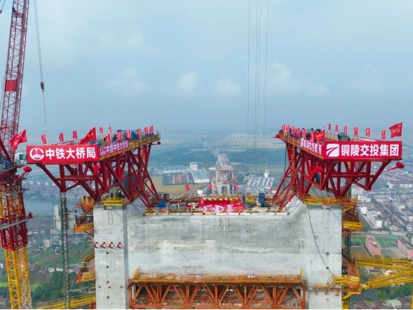 10月20日11時(shí)18分,由市交投集團(tuán)投資建設(shè)、中鐵大橋院設(shè)計(jì)、中鐵大橋局承建的G3銅陵長江公鐵大橋先導(dǎo)索順利過江,大橋南北主塔成功空中“牽手”,標(biāo)志著世界首座雙層斜拉-懸索協(xié)作體系大橋全面轉(zhuǎn)入上部結(jié)構(gòu)貓道施工階段。