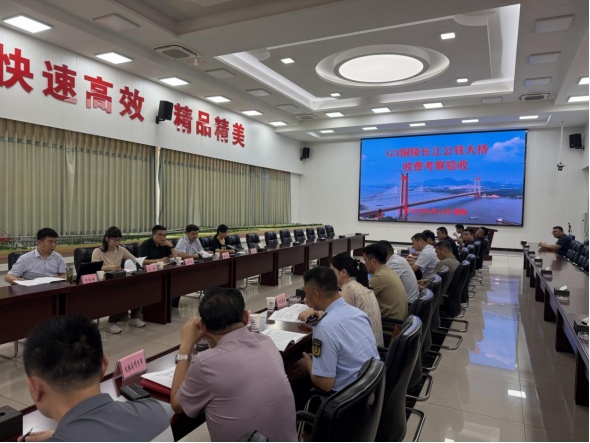考察組一行首先實(shí)地查看了收費(fèi)站現(xiàn)場情況,對(duì)項(xiàng)目收費(fèi)系統(tǒng)的建設(shè)成果給予高度評(píng)價(jià)。在隨后召開的驗(yàn)收會(huì)議上,與會(huì)人員觀看了項(xiàng)目建設(shè)紀(jì)實(shí)視頻,聽取了市交通運(yùn)輸局關(guān)于收費(fèi)申報(bào)驗(yàn)收工作的專題匯報(bào)。經(jīng)充分討論,考察組一致認(rèn)為G3銅陵長江公鐵大橋項(xiàng)目已具備設(shè)站收費(fèi)條件,同意辦理收費(fèi)申報(bào)手續(xù)。