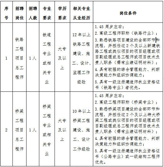 銅陵市綜合交通投資集團(tuán)有限公司因經(jīng)營發(fā)展需要,現(xiàn)面向社會公開招聘2名項(xiàng)目管理人員,現(xiàn)將具體事項(xiàng)公告如下: