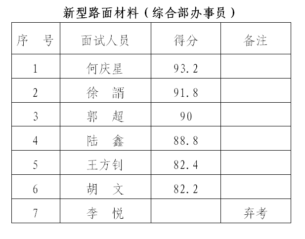 根據《銅陵市綜合交通投資集團有限公司公開招聘人員面試公告》,我公司已于1月13日開展銅陵市綜交新型路面材料有限責任公司、銅陵交投再生資源綜合利用有限公司招聘人員面試工作,現(xiàn)將擬招錄人員名單公示如下。