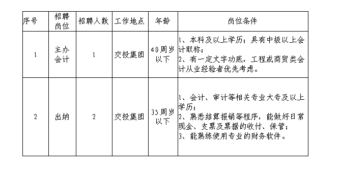 銅陵市綜合交通投資集團(tuán)有限公司招聘崗位表