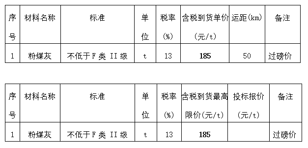 ? 1、“銅陵通馳商貿(mào)有限公司粉煤灰供應(yīng)商”(項(xiàng)目編號(hào):TCG22061)招標(biāo)文件中招標(biāo)最高限價(jià)表、投標(biāo)報(bào)價(jià)表分別修改后如下: