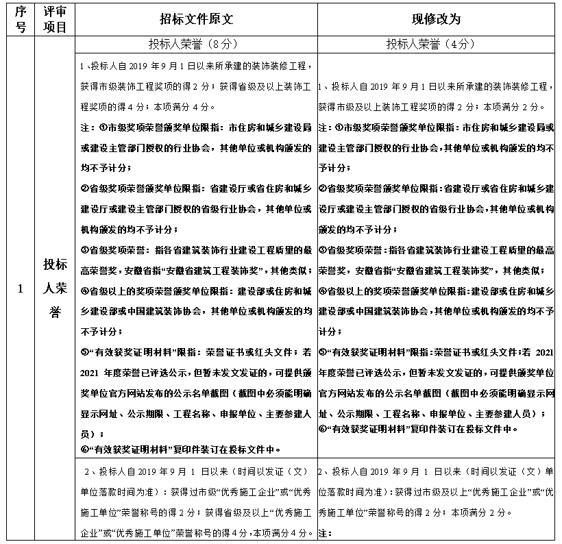 1、招標(biāo)文件的“評(píng)標(biāo)辦法”的部分內(nèi)容修改如下: