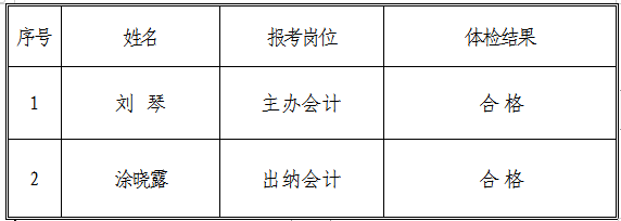 根據(jù)《銅陵市交通投資有限責任公司招聘人員公告》,集團公司綜合部于2018年12月24日組織報考出納會計、主辦會計職位的考生參加體檢,現(xiàn)將相關(guān)體檢結(jié)果向社會進行公示: