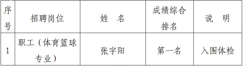 根據(jù)《銅陵市綜合交通投資集團(tuán)有限公司公開(kāi)招聘人員公告》和面試綜合成績(jī)排名,結(jié)合公司崗位實(shí)際需求和面試評(píng)審專家綜合意見(jiàn),我公司經(jīng)研究決定,本次招錄一名職工(體育籃球?qū)I(yè))?,F(xiàn)將入圍體檢人員名單公示如下: