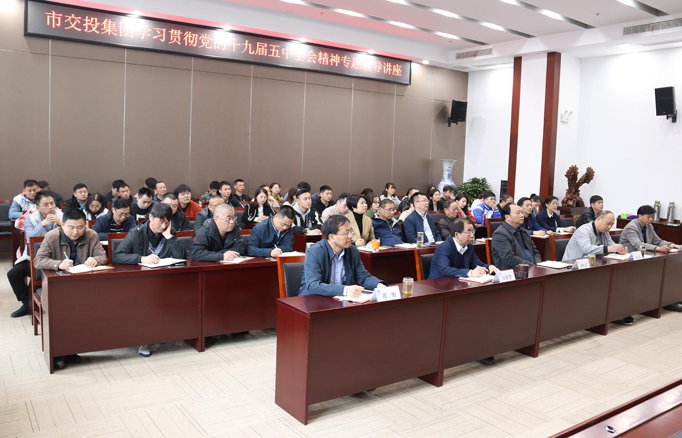 為深入學(xué)習(xí)貫徹黨的十九屆五中全會精神,11月19日下午,集團(tuán)公司邀請市委黨校楊陟教授作專題輔導(dǎo)講座。公司黨工委班子、中層以上管理人員、黨員以及入黨積極分子參加學(xué)習(xí)活動。