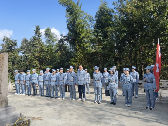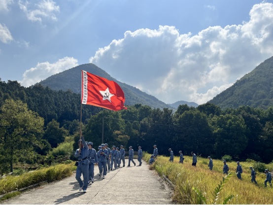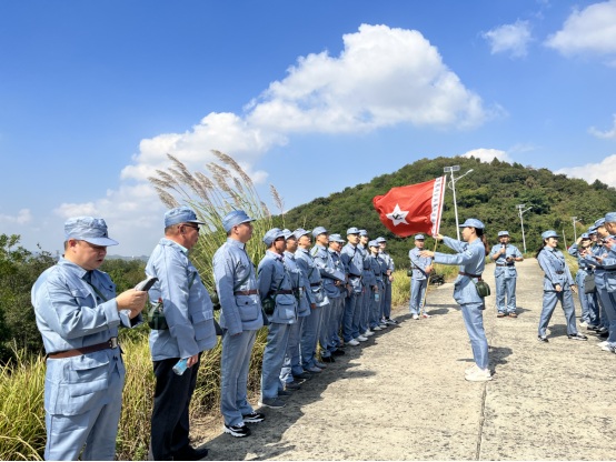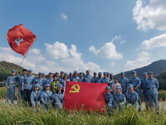 活動中,大家首先觀看了《渡江偵察記》節(jié)選片段,重溫了那段革命戰(zhàn)爭場景,回顧了劉四姐為革命事業(yè)甘于奉獻的愛國精神。隨后,大家換上新四軍軍服,就地開啟新四軍紅色文化體驗之旅,重溫紅色記憶。爾后大家齊唱一首革命歌曲《沒有共產黨就沒有新中國》;重走一段新四軍的小路,山路高低不平,少數黨員同志能夠克服困難,堅持走了5公里;聽一段新四軍故事,講解員講述劉四姐傳奇而短暫的感人故事;吃一頓新四軍飯,憶苦思甜,吃著紅薯,感受當年新四軍為新中國解放事業(yè)作出的巨大貢獻。