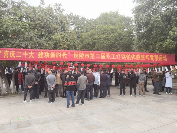 組織部分職工參加由市總工會舉辦的“喜慶二十大 建功新時代”燈謎競猜活動。當天活動現(xiàn)場,人頭攢動,四百余條五顏六色的“燈謎”懸掛當空,熱鬧非凡。大家被各式各樣的燈謎深深吸引,整個競猜現(xiàn)場喜慶有序,不時傳來陣陣歡聲笑語,氣氛歡樂祥和。本次猜燈謎活動融政治性、趣味性于一體,寓教于樂,既弘揚了中華民族的傳統(tǒng)文化,又豐富了職工業(yè)余文化生活。