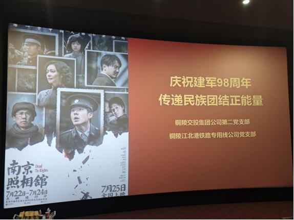 為進(jìn)一步加強(qiáng)黨性教育,傳承紅色基因,8月28日,銅陵江北港鐵路專(zhuān)用線公司黨支部聯(lián)合銅陵交投集團(tuán)公司第二黨支部開(kāi)展“慶祝建軍98周年 傳遞民族團(tuán)結(jié)正能量”紅色觀影《南京照相館》主題黨日活動(dòng),通過(guò)沉浸式觀影體驗(yàn),引導(dǎo)黨員干部銘記歷史、砥礪初心。